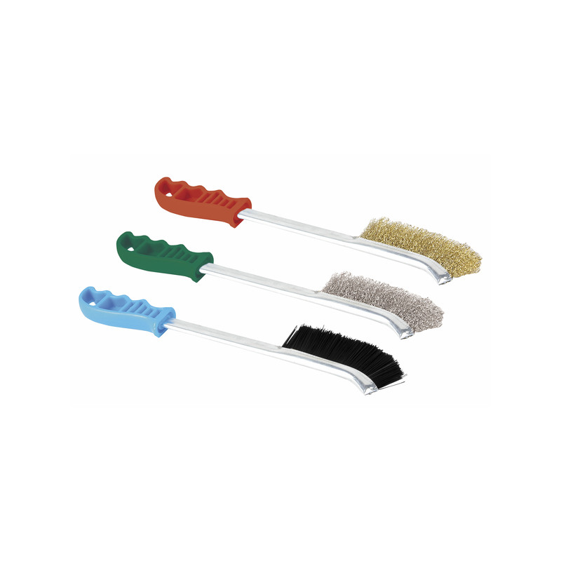 Lot de 3 brosses longues en Acier laitonné, Nylon et Inox. Pratique et résistante, ces brosses sont aussi maniables et s'adapte à toutes les surfaces de travail, même les plus inaccessibles.