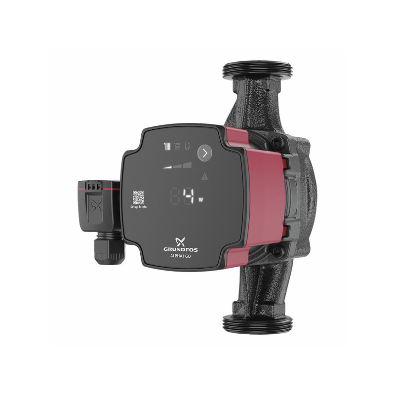 Le circulateur à haut rendement ALPHA1 GO est conçu pour les installations de chauffage et de climatisation. Le circulateur à haut rendement ALPHA1 GO est équipé d'un moteur à commutation électronique, conçu pour la circulation de liquides dans les installations de chauffage et de climatisation. Le circulateur ALPHA1 GO est équipé de commandes intelligentes et dispose de trois modes de régulation : pression constante, pression proportionnelle et courbe constante. Chaque mode dispose de trois réglages de vitesse ajustables. Le remplacement des anciens circulateurs intégrés et autonomes, y compris la réplication des courbes, est facilité par l'utilisation de l'application Grundfos GO et du panneau de commande. La capacité d'auto-ventilation automatique et la protection contre la marche à sec assurent un fonctionnement silencieux et la fiabilité de la pompe. Le produit est doté d'un démarrage robuste qui réduit le risque de blocages dus à l'accumulation de saleté, de magnétite et de calcaire.