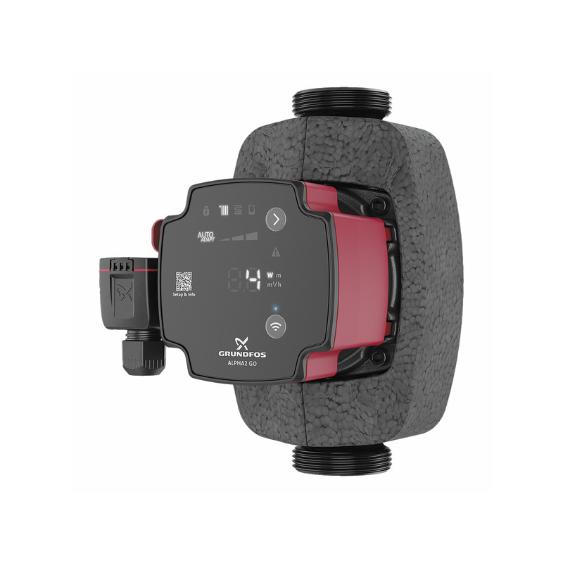 Le circulateur ALPHA2 GO à haut rendement est équipé d'un moteur à commutation électronique et conçu pour la circulation de liquides dans les installations de chauffage et de climatisation. Le circulateur ALPHA2 GO est conçu avec des modes de régulation intelligents : pression constante, pression proportionnelle, débit constant et courbe constante. Chaque mode dispose de points de consigne réglables. Le réglage AUTOADAPT, disponible pour une pression constante et proportionnelle, supprime la nécessité de sélectionner manuellement le point de consigne de la pompe. L'entrée PWM permet une régulation précise de la vitesse, permettant ainsi une meilleure optimisation complète du système. La capacité d'auto-ventilation automatique et la protection contre la marche à sec assurent un fonctionnement silencieux et la fiabilité de la pompe. Le produit est doté d'un démarrage robuste qui réduit le risque de blocages dus à l'accumulation de saleté, de magnétite et de calcaire.