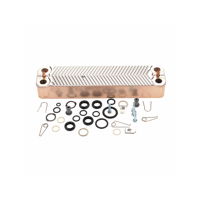 • Hydraulique : Vannes trois voies, échangeurs à plaques pour l'eau chaude sanitaire (ECS) instantanée, blocs hydrauliques et circulateurs.