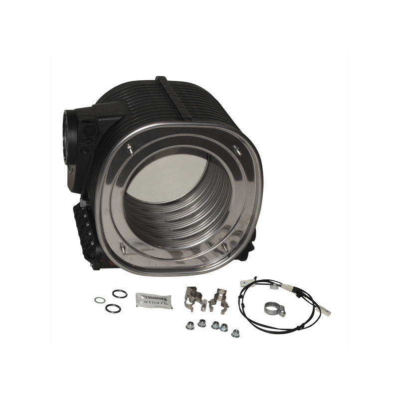 Le Corps de Chauffe / Échangeur : Ces éléments, souvent en inox ou en aluminium, doivent être exempts de calcaire pour maintenir un transfert de chaleur optimal et garantir le rendement maximal de la condensation.