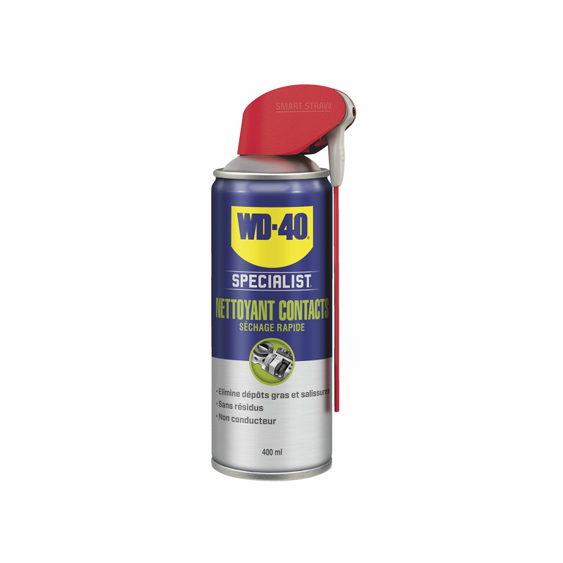 Conçu de façon à ne laisser aucun résidu, le nettoyant contacts WD-40 SPECIALIST® peut être utilisé sur tous les métaux, plastiques et caoutchoucs. Évaporation rapide. Le nettoyant contacts est non conducteur.