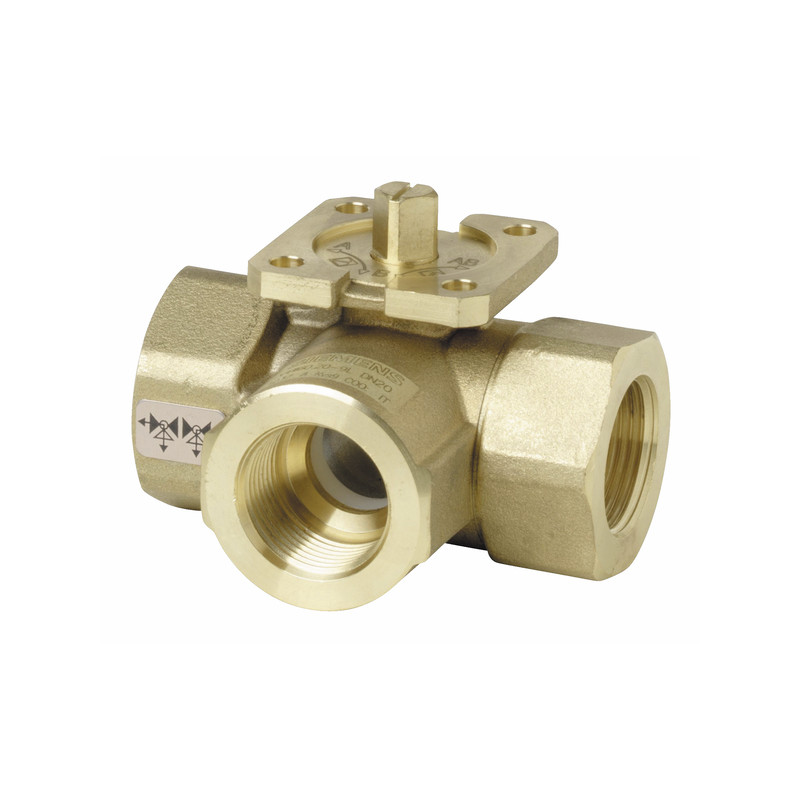 Vanne à boisseau sphérique PN40 3 voies DN40. Raccords à filetage intérieur Rp.. selon ISO 7-1. à utiliser dans les installations de chauffage, de ventilation et de climatisation comme vannes à boisseau sphérique de commutation. Pour les circuits fermés 5...120°C